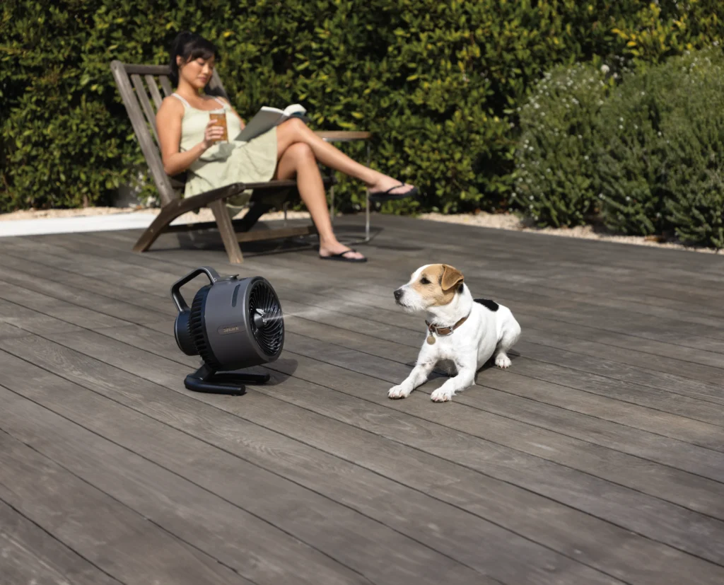 Shark FlexBreeze HydroGo je napravljen da izdrži spoljne uslove zahvaljujući IPX5 otpornosti na kišu i UV otpornim materijalima.* U zatvorenom prostoru radi tiho, bez ometanja, što ga čini savršenim za spavanje ili rad od kuće.